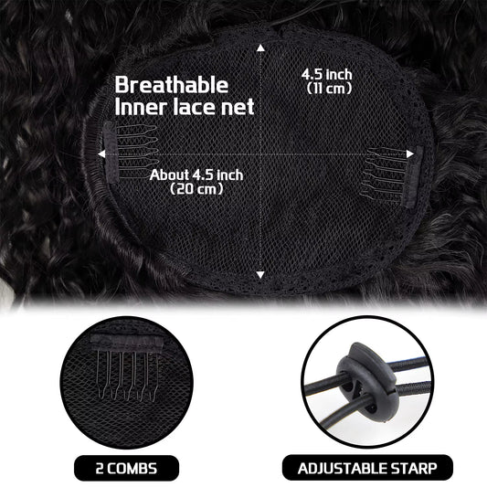 24 Inch Curly Ponytail Extensions Synthetic Deep Wave Drawstring Ponytail for Black Women Human Hair Feeling with Clip