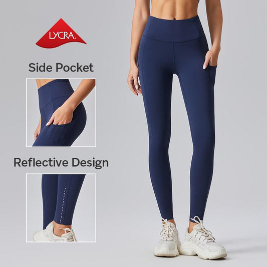 AFZ Women'S High Waisted Tummy Control Side Pocket Leggings Ladies Sportswear Moisture-Wicking Breathable Fabric & Reflective for Night Runs