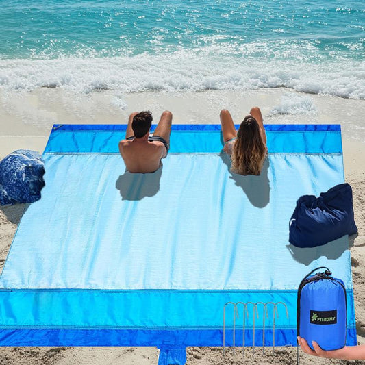 Premium Waterproof & Sandproof Beach Mat - Oversized, Portable, and Lightweight with 6 Stakes & Carry Bag - Perfect for Beach Days, Camping, and Family Picnics