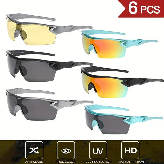 Paleshy 6Pcs Outdoor Cycling Sunglasses Unisex Rectangle Full Rim PC UV Protection Lightweight Eye-Friendly HD Anti-Clare Glasses for Sports Activities
